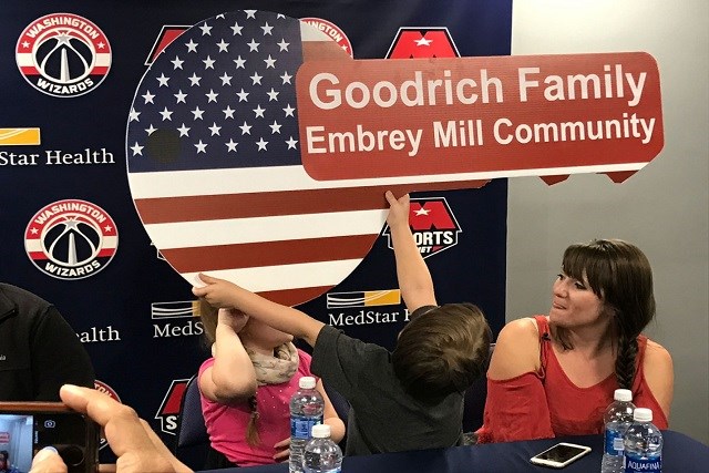 When most people attend a basketball game, they can expect long lines to get in, loud music, overpriced junk food, and the feeling of tension every time someone has to take a free throw. However, during the Washington Wizards game that took place on Veteran’s Day, retired U.S. Army Sgt. Timothy (Michael) Goodrich and his family got a huge surprise during halftime that they did not see coming. Operation Finally Home, a nonprofit organization that brings together builders and communities to provide homes for America’s military heroes, revealed plans to build a custom, mortgage-free home here at Embrey Mill for the Goodrich family, to thank them for their service. Talk about a memorable halftime show!